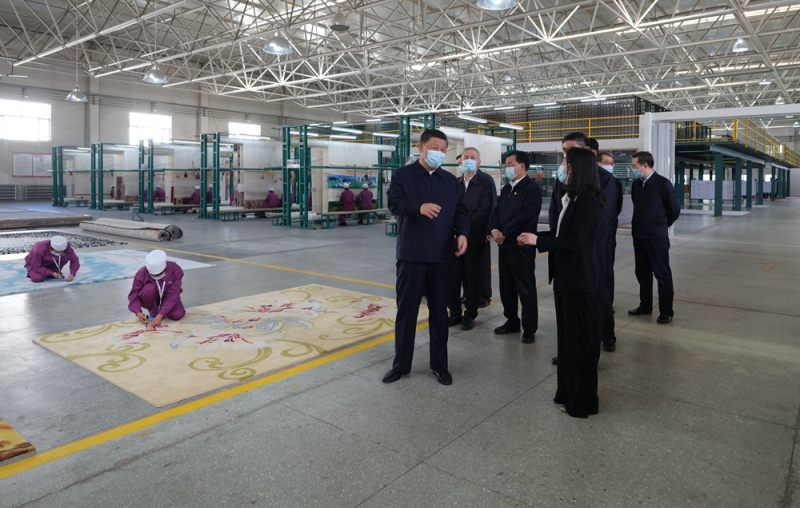 7日下午,习近平总书记来到青海圣源地毯集团有限公司,走进生产车间、设计部门察看产品生产、设计情况。习近平表示,藏毯是一种特色产业,你们很好把传统工艺和现代工艺结合在一起,契合了个性化、多样化的市场需求。藏毯产业是符合青海实际的产业,有扶贫致富、推进乡村振兴的作用,还有促进民族团结的作用。习近平希望青海发展更多这样的特色产业,靠创新实现更好发展。
