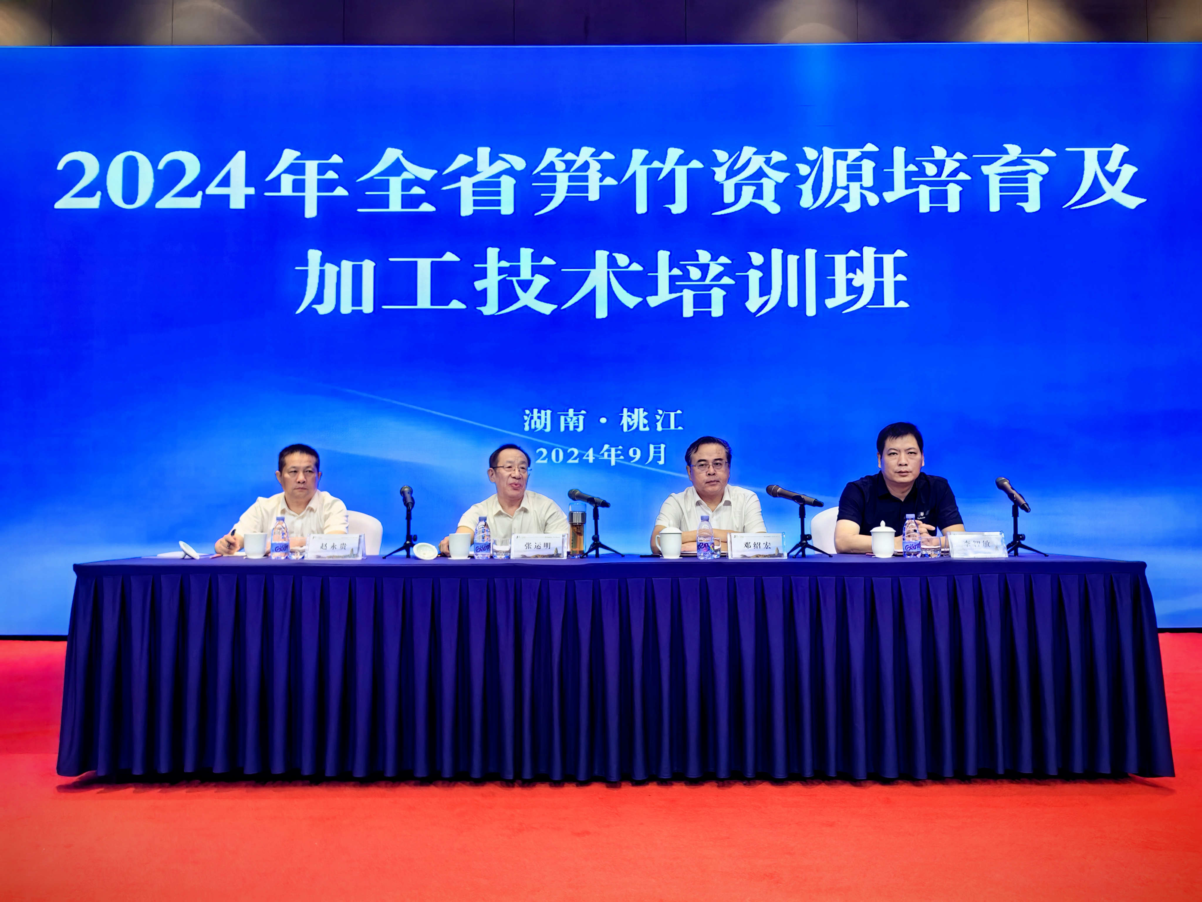 9月24日至25日,2024年全省笋竹资源培育及加工技术培训班在桃江县华美达大酒店开班,来自全省14个地市州的林业专家、区县重点基地负责人及笋竹经营企业项目负责人参加培训,省林业局二级巡视员张运明、省林业局经发中心主任邓绍宏、市林业局副局长赵永贵、副县长李智敏出席开班仪式。