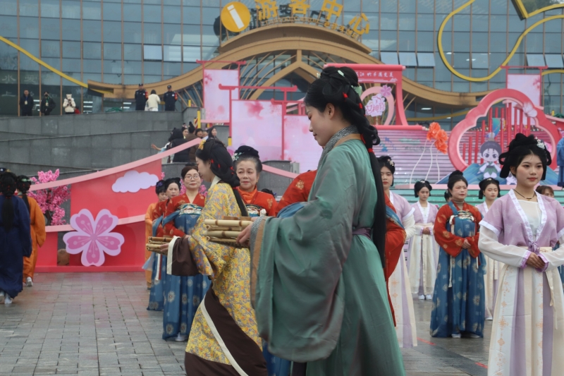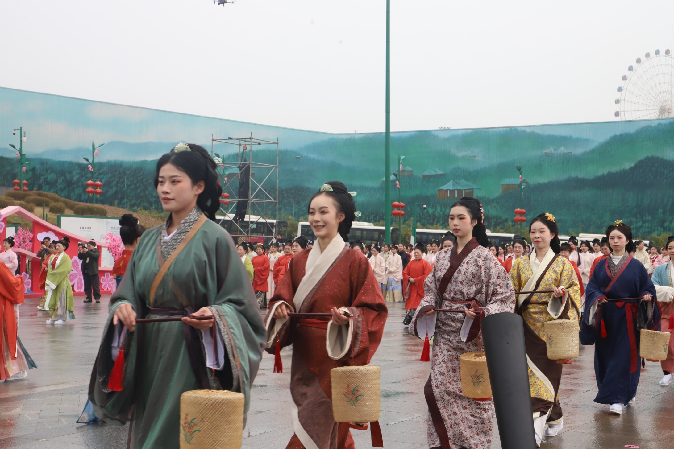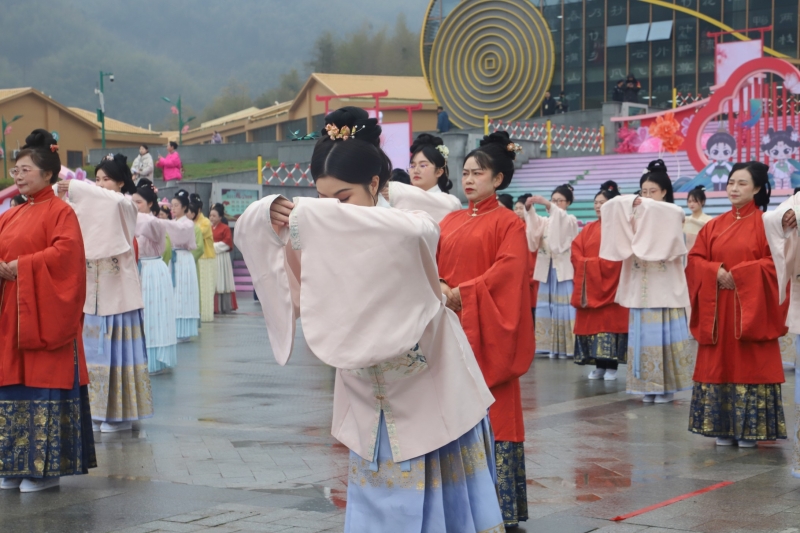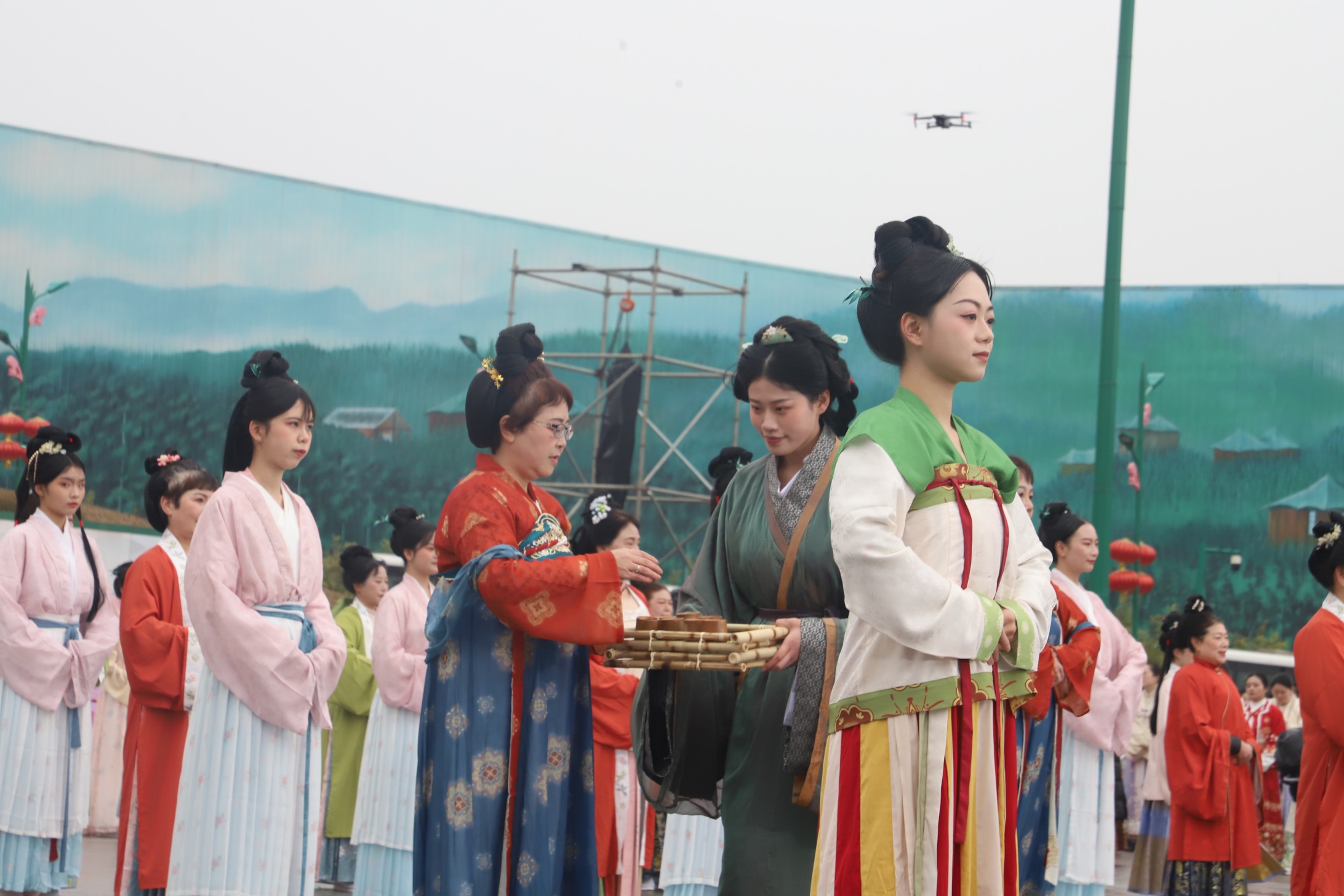 活动现场热闹非凡,一系列精彩的庆祝节目轮番上场。在百人及笄礼上,百余名身着传统服饰的“笄者”们依次进入笄礼现场,经过盥洗、加笄、醴礼、谢拜等环节,在长辈、正宾、赞者等众多角色辅助下,完成了自己的成人礼。及笄,即簪笄,象征着女子年满十五岁,是从孩童迈向成年,承担起家庭与社会责任的重要时刻。这一仪式不仅是对少女成长的肯定,更是对未来生活的美好期许。