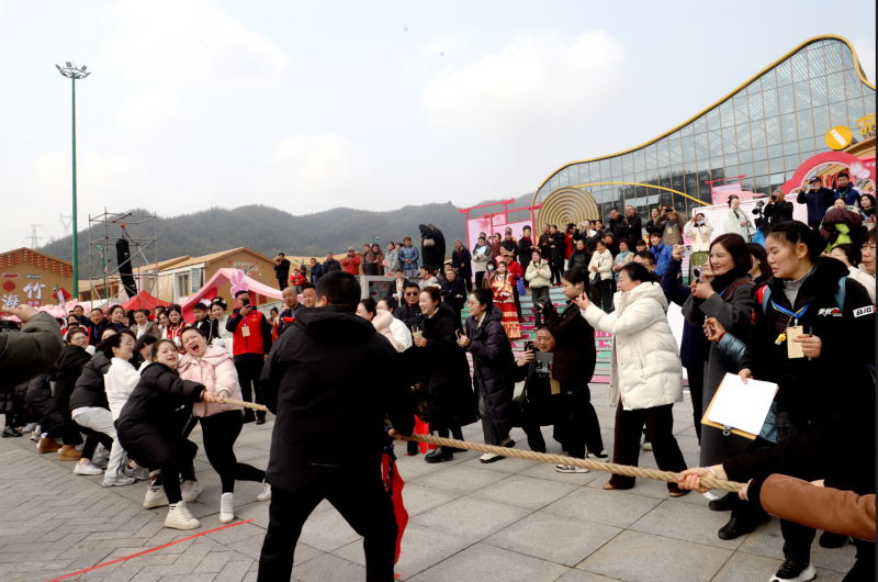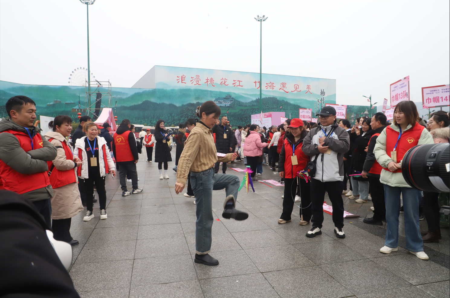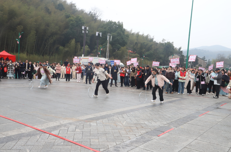 迎“三八”女子国风趣味运动会现场气氛热烈,加油声、欢笑声此起彼伏。在踢毽子比赛中,五彩的毽子在选手们的脚尖上下翻飞,如同灵动的小鸟。小小的毽子,传递着快乐与活力,也让大家重温童年的美好回忆。滚铁环比赛充满了速度与激情。选手们手持推杆,推着铁环在赛道上飞奔,她们矫健的身姿成为一道亮丽的风景线。最激动人心的当属拔河比赛。参赛队员们紧握长绳、扎稳马步,随着裁判员一声令下,麻绳两端的女队员们齐心协力,拼尽全力往后拉。绳子中间的红绸左右摇摆,每一次移动都牵动着现场观众的心。
