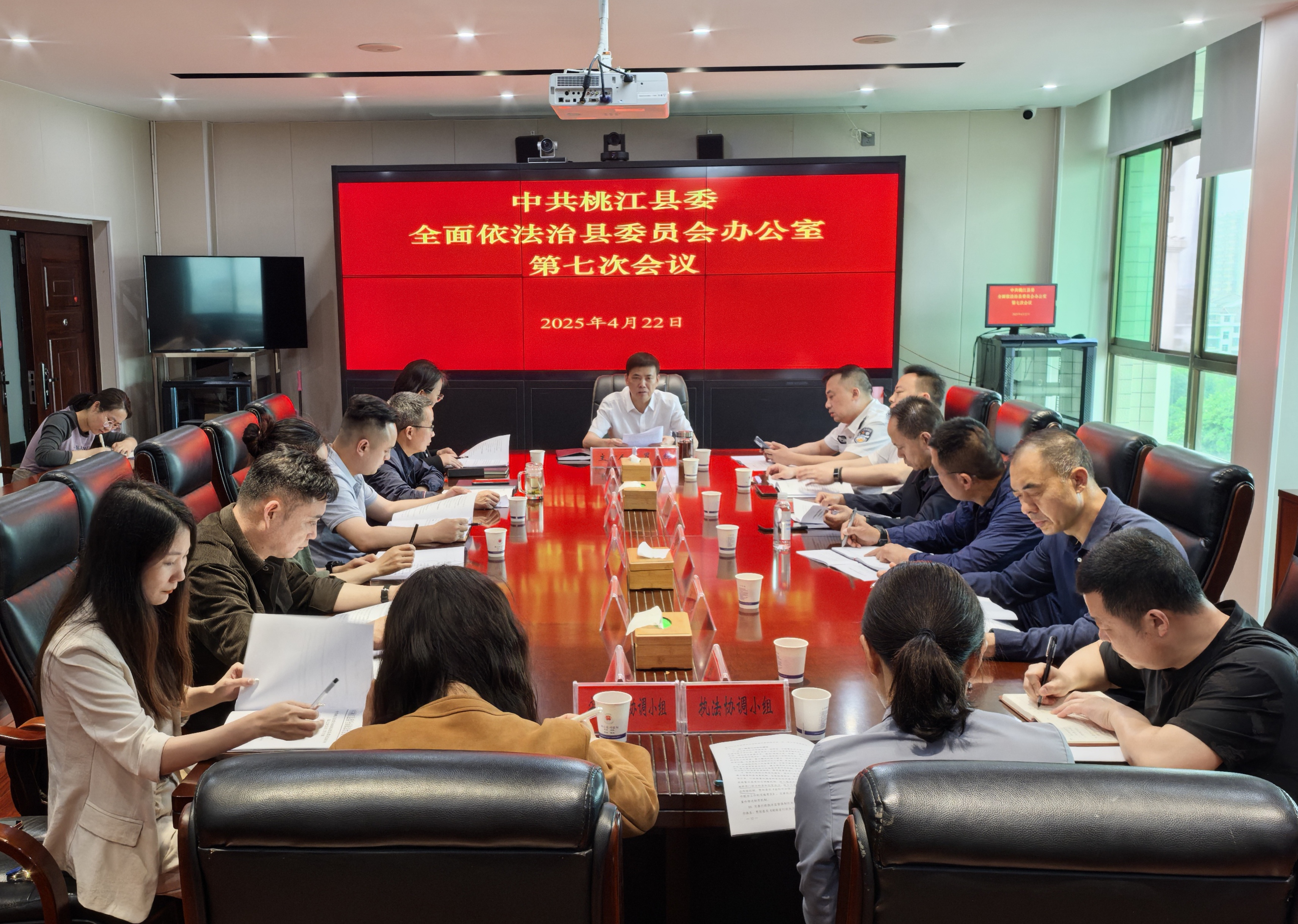 4月22日,县委常委、县委政法委书记、县委全面依法治县委员会办公室主任罗歆辉主持召开中共桃江县委全面依法治县委员会办公室第七次会议。