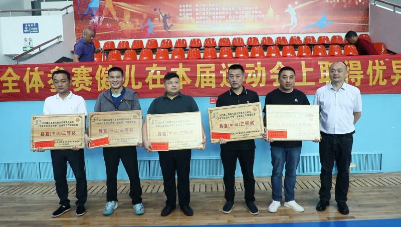 4月25日,由桃江县人民政府主办,县文旅广体局和县总工会承办的桃江县第九届全民健身运动会全县职工气排球比赛在县体育馆圆满落幕。县人大常委会副主任赵勇出席闭幕式并颁奖。