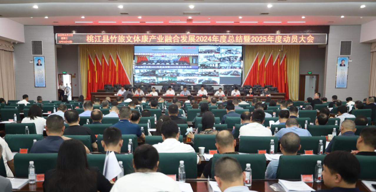 5月7日上午,桃江县竹旅文体康产业融合发展2024年度总结暨2025年度动员大会召开,市政协副主席、县委书记向荣出席并讲话,县委副书记、县长周登高作主题报告,县委副书记、统战部部长冷亮主持会议,县委、县人大、县政府、县政协在职实职县级领导在主会场出席会议。