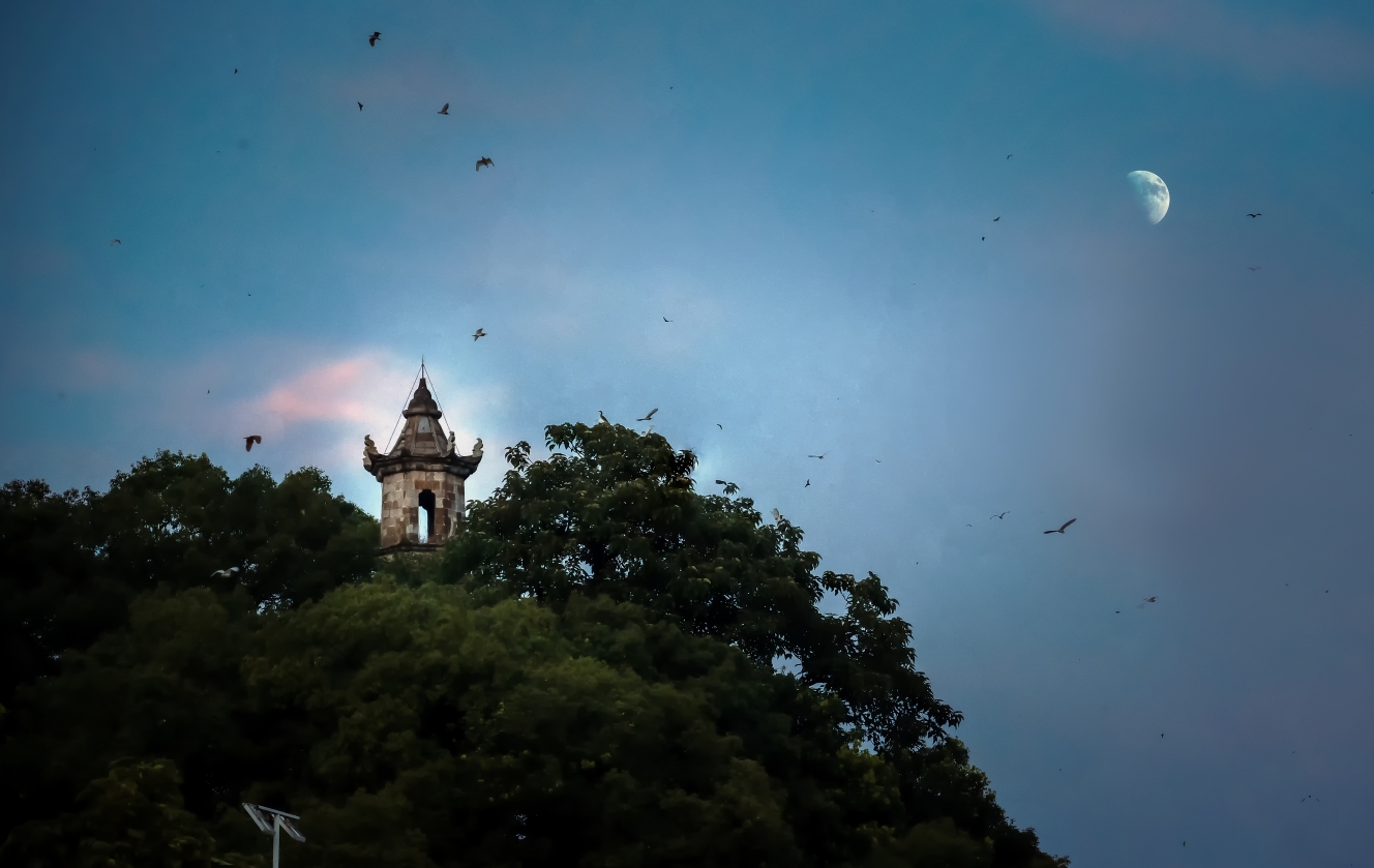 这大概就是古人诗句里说的“月出惊山鸟”吧。