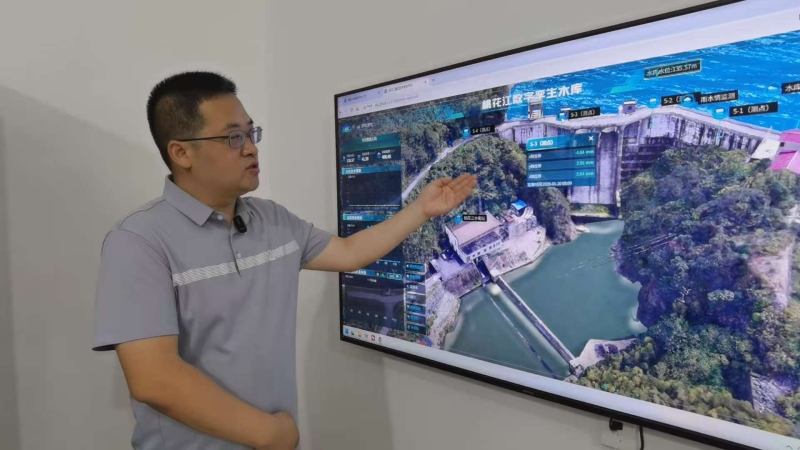 杨攀讲解桃花江孪生数字水库的作用 胡卫红 摄