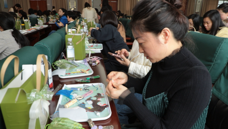 家属们制作手工廉礼 杨慧 摄