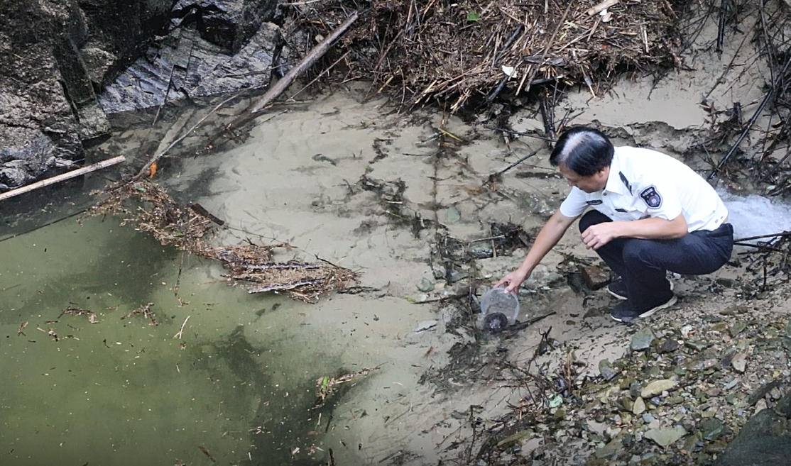 这只鹰嘴龟是石牛江镇增塘村的高三学生文程锦和他爷爷在自家房边扫沟时发现的。据文程锦介绍,7月22日下午他和爷爷到屋旁边扫沟,发现了沟里有一只像黑色石头一样的乌龟,在网上查了一下,发现这只乌龟是国家保护动物,便及时拨打了12345县长热线,报告了此事。