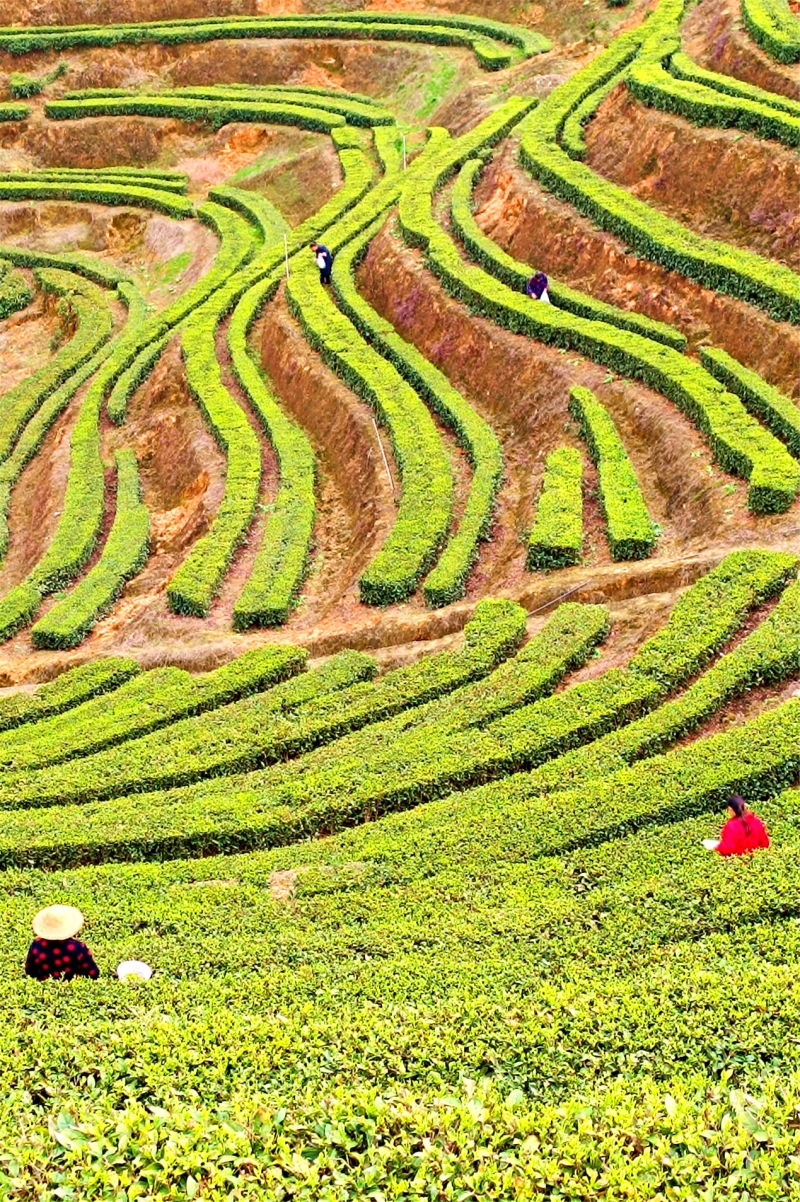 武潭镇华莱茶园的春茶迎来了采摘的时候,满坡满眼的翠绿,是对茶农最丰厚的回报。