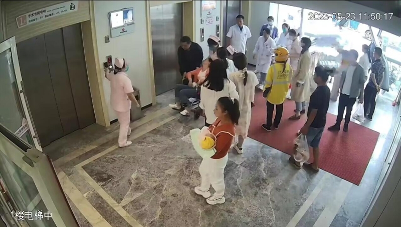 “不好了,有人晕倒了!”“医生、医生,快来救人……”近日,县妇幼保健院住院大楼电梯前,一名刚走出电梯的女士突然晕倒在地,周边群众见状赶紧呼喊医生救援。