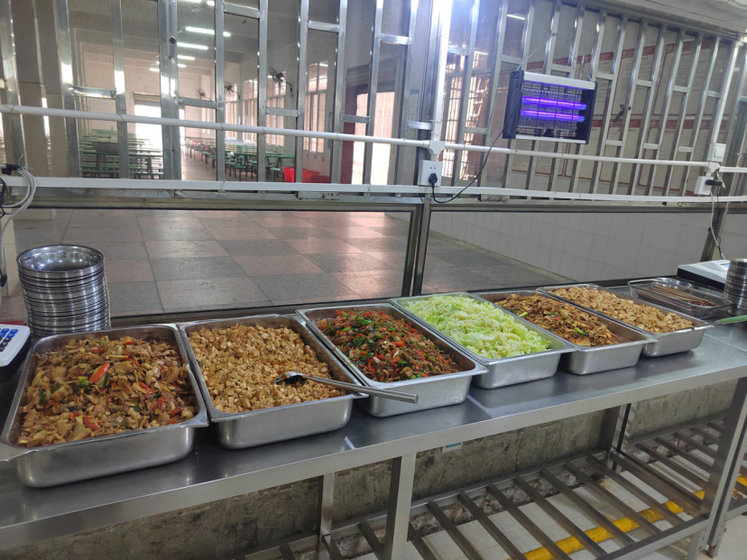 笔者在北校区食堂看到,中餐伙食是两荤两素:辣椒炒肉,豆角炒肉,莴笋丝、白干子(豆腐)。副校长汪芳介绍,早餐收费7元,中餐收费7.5元。菜品丰富,一周五天有25个品种轮换不重样,确保荤素搭配、营养均衡。食材成本为75%,帐目每月公示,保本不赚钱。据了解,该校建立食材采购检测制度,食材从中国供销城统一进货,严把出入库登记和食品查验关,确保师生“舌尖上的安全”。