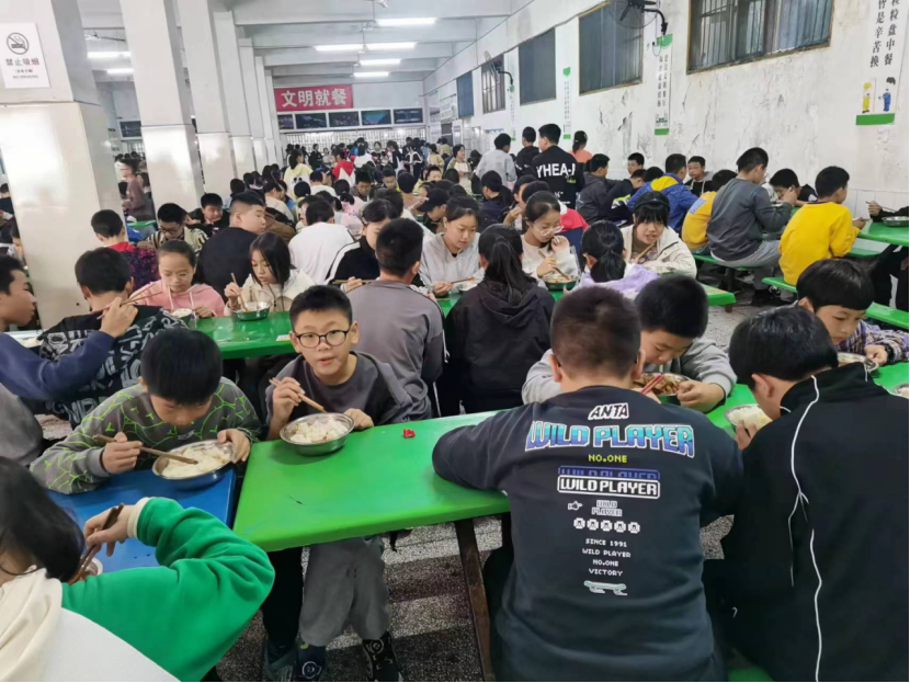 桃花江镇第二中学分北校区和南校区。北校区17个初一班级,59名教师、872名学生。南校区初二、初三共33个班级,120名教师,1650名学生。全县中小学校食堂与校园及周边商店管理整改工作调度会议后,该校认真学习落实会议精神,出台《打造无声食堂 创建文明校园》方案。笔者在该校南校区看到,校内小卖部已经清空,改成了图书资料小仓库。课堂内书声琅琅,篮球场有一群学生在上体育课。中午12点,笔者来到北校区,老师同学生一起排队,井然有序进入学校食堂。从厨房窗口盛菜、饭盆盛饭到落座用餐,无喧哗无拥挤,有条不紊。该校校长詹建才对笔者说:“学校成立了有老师代表、家长代表和学生代表组成的膳食委员会,建立师生用餐‘同时间同标准同缴费’的长效机制,师生同吃‘大锅饭’,既让家长放心,也拉近了师生之间的距离。”