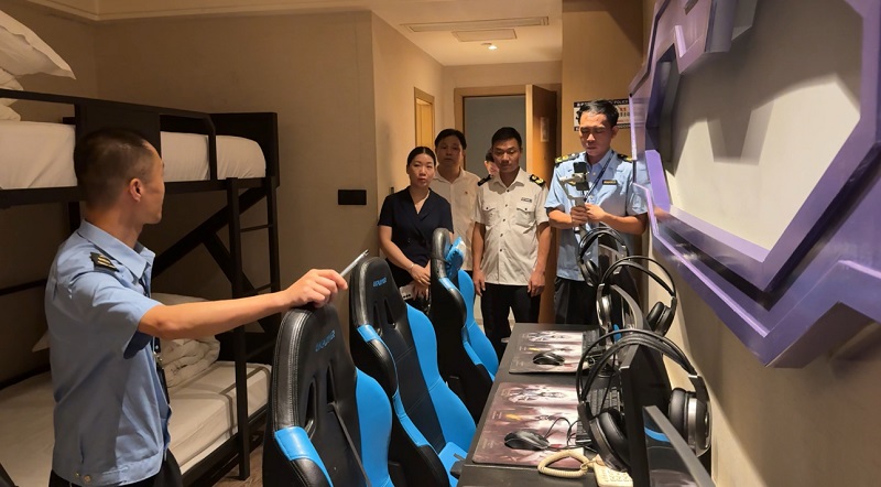 7月30日晚上,县公安局联合市监、教育、卫健、文旅广体局、融媒体中心等部门,针对辖区内的宾馆、酒店、网吧、KTV、沐足店等重点场所开展第八次“利剑护蕾·雷霆行动”专项清查行动。