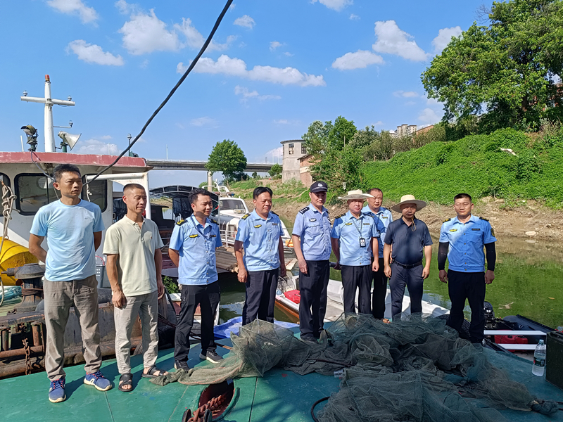 8月5日,县禁捕退捕办牵头,联合县农业农村、森林公安、水运事务等部门,在修山电站下游资江干流桃江段及其他重点禁捕水域开展巡河清河行动,当天收缴地笼22个,销毁竹排1个,扣押“三无”船舶3艘,抓获电打鱼违法人员1名。