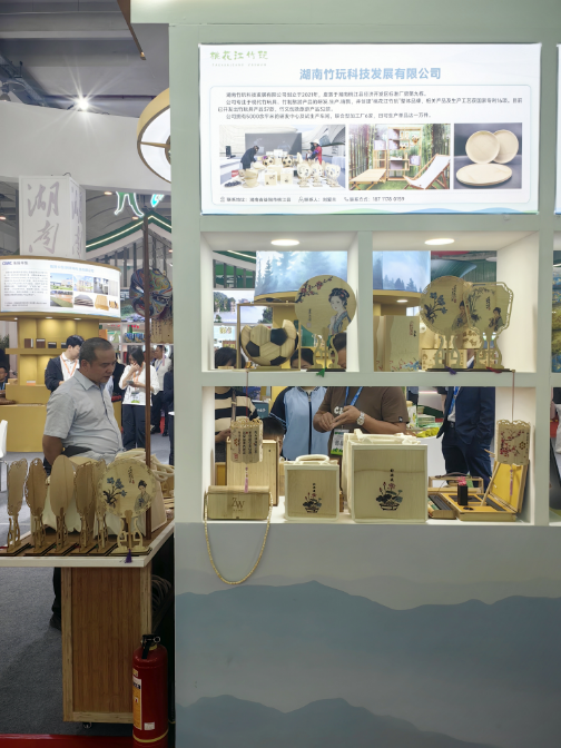 湖南省林业局组织27家湘企参展,全方位展示“湖南林业好物”。湖南竹玩科技发展有限公司旗下品牌“桃花江竹玩”系列产品受到行业及国内外客商关注,得到专家评委的高度认可,获得林木产品类特等奖,也是湖南唯一。