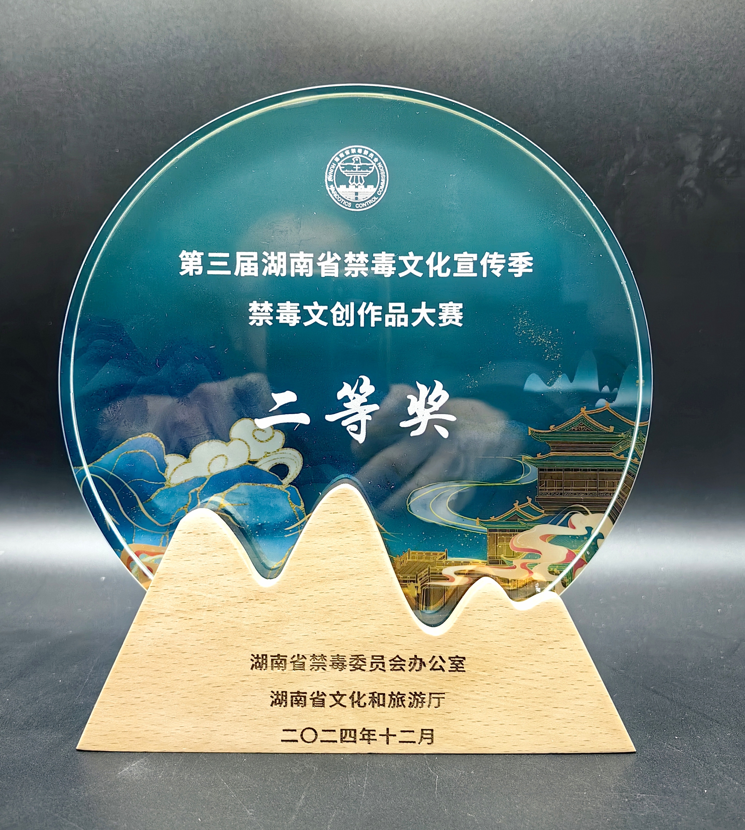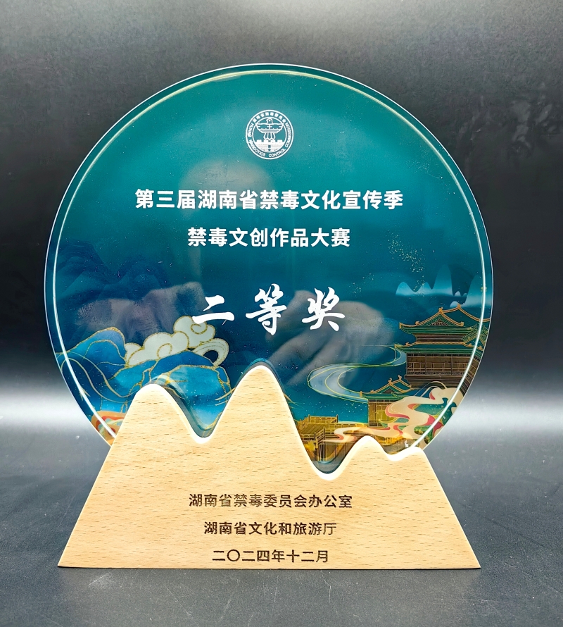 本次大赛主题为“绿色无毒·悦享潇湘”,由湖南省禁毒委员会办公室、湖南省文化和旅游厅主办,决赛于元月3日在长沙音乐厅成功举行。此次共征集禁毒文创作品856件,通过一系列激烈的角逐,最终评选出一等奖3个、二等奖6个,三等奖15个,网络人气奖10个、优秀作品奖10个。