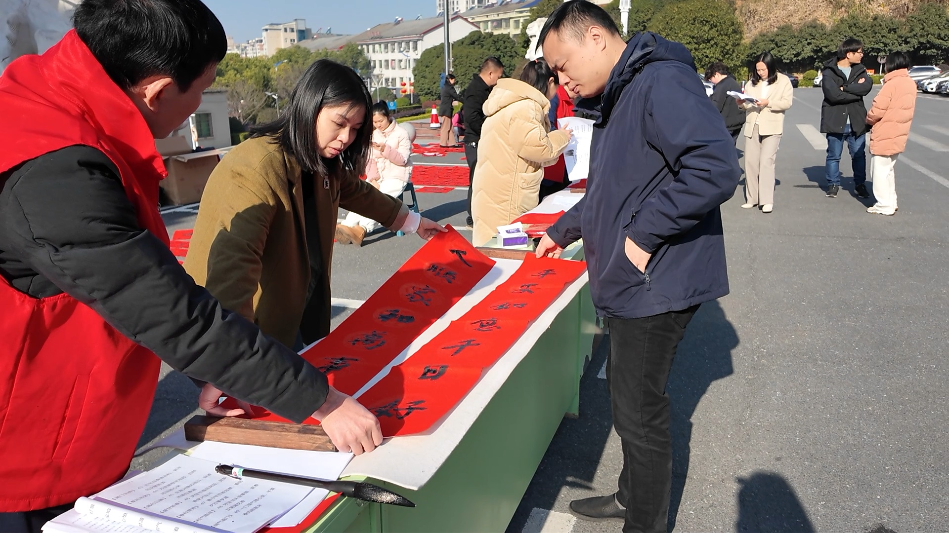 县委编办工作人员龚英子表示:“往年家里贴的春联都是市场上买的印刷品,今年是书法家现场书写的,家门口张贴手写的春联让年味更浓了。”县委社会工作部习守荣也说道:“这是书法老师按照我的想法定制的春联,我特别喜欢,过年的时候我就把这火红春联贴在家门口,希望2025年顺顺利利,红红火火。”