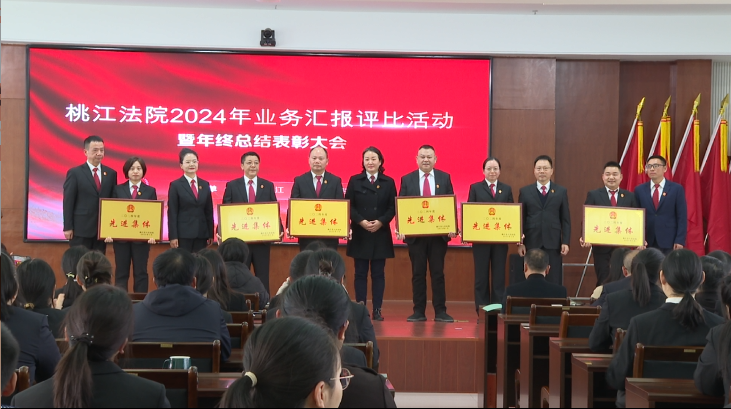 1月21日下午,桃江县人民法院举行2024年业务汇报评比活动暨年终总结表彰大会。现场表彰6个先进集体和29名先进个人。