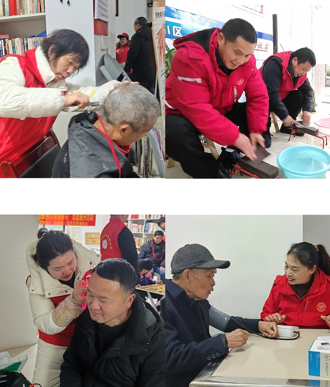 在桃江县金裕庄园小区党支部活动中心,桃江县新时代文明实践中心牵头联合桃江蓝天志愿者协会开展“学雷锋·文明实践我行动”志愿服务,活动现场志愿者们为居民群众提供公益理发、衣服缝补、义务磨刀、测量血压、爱心义诊、小家电免费维修、青少年一对一陪伴等便民服务,虽然当天下着小雨,但是前来参加活动的居民们络绎不绝,现场热闹非凡。