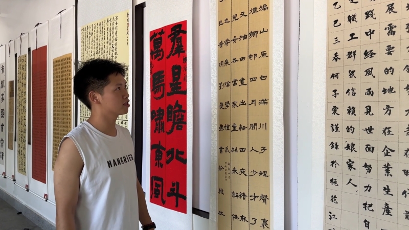 景区其他配套项目同样精彩纷呈。竹博览馆前的七彩风车长廊则打造出一片梦幻天地。数万只彩色风车随风转动,这一视觉盛宴成为游客必到的打卡胜地。在天问书院举办的竹韵书法展上,百余幅职工书法作品巧妙融合了桃江竹文化与美人文化精髓。游客们来此驻足细品,或低声吟诵,感受笔墨与竹韵的交融。逛竹博览馆,打卡“大竹笋”,欣赏精彩演出,再到竹海市集品尝特色小吃,广大游客体验到了充实与快乐。