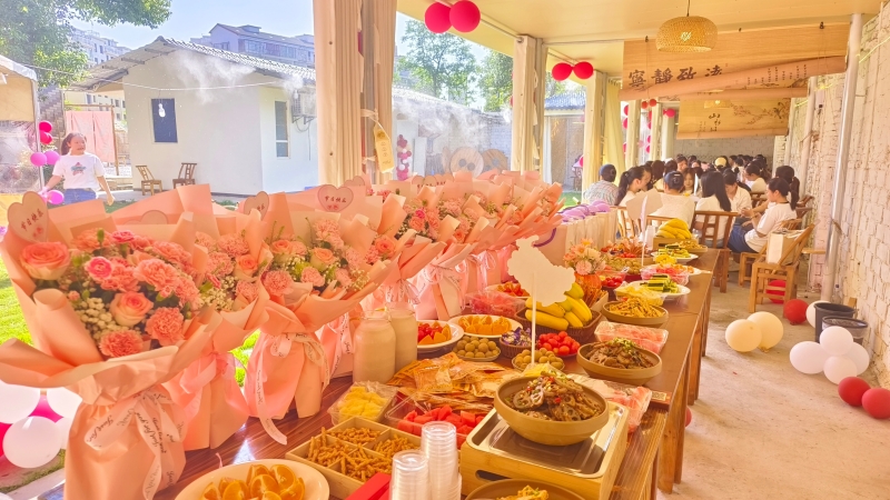 随后的团建游戏环节充满活力。拔河比赛紧张激烈,纸杯传水考验默契,“公鸡下蛋”游戏引得欢笑不断。这些游戏让护士们放松身心,增进了解与信任,提升团队凝聚力。手工 DIY 与美食自助活动将气氛推向高潮。护士们动手制作蒿子粑粑,庭院自助美食区也热闹非凡。大家品尝美食、分享趣事,忘却工作疲惫,享受节日欢乐。