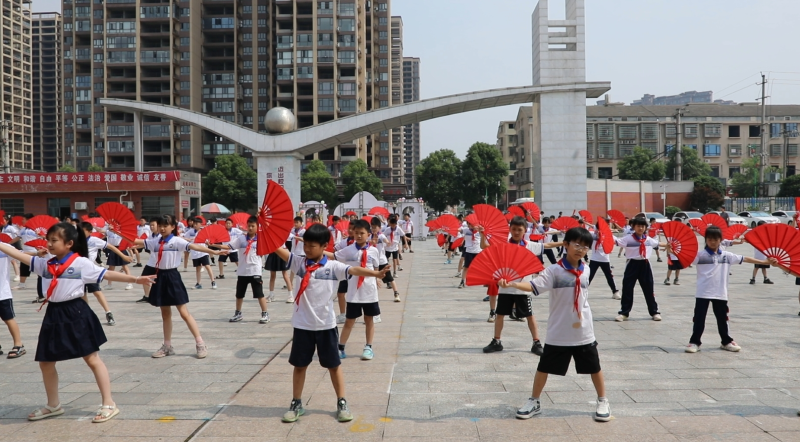 田径场上,学校为家长和孩子们带来了一场精彩的大课间扇子舞展示。随着音乐响起,同学们整齐划一的队列、朝气蓬勃的舞姿,展现出玉潭学子昂扬向上的精神风貌,赢得了家长们的阵阵掌声。
