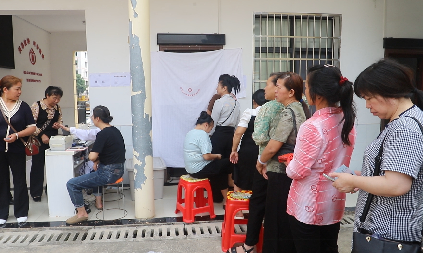 一大早,接到检查通知的妇女们在该镇卫生院排起了长队,她们在工作人员的引导下依次进行了信息登记、病史询问、妇科检查、宫颈细胞学检查以及乳腺超声检查等项目。医护人员在为妇女们检查的同时,还针对她们提出的健康问题进行了解答,普及“两癌”防治知识。