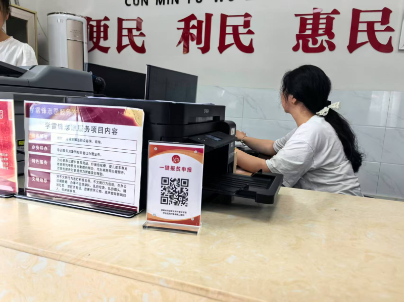 便民服务中心的“一键报贫申报”展示牌 李成 摄