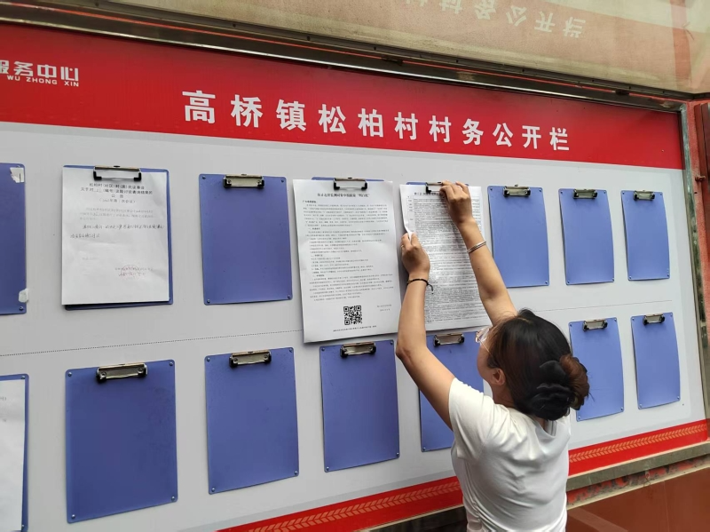 工作人员在村务公示栏张贴“明白纸” 胡锡平 摄
