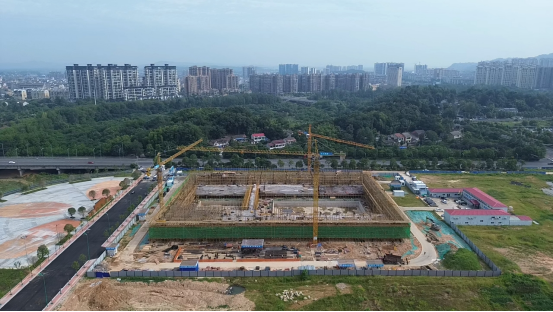 该项目技术负责人刘衡柱介绍,高温确实对施工进度有一定影响,但工期不等人,大家都想着抢抓进度、质量,早日把项目建好,让学生们早日用上新场馆。目前,项目已完成桩基工程、南北两区基础底板及土方回填,现在处于主体结构施工阶段,进度已完成过半,预计11月中旬可进行项目交付。建成后,将成为学校体育教学和活动的重要场所。
