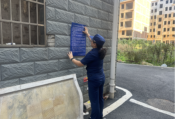 张贴海报、向群众宣传消防安全 邹莹 摄