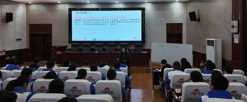 活动伊始,调研组成员、安化一中资深语文教师熊凌云为桃江一中学子带来了一场题为“智慧读文 有效提分”的专题讲座。熊老师紧扣高考真题与典型模拟题,通过现场演练与互动提问,引导学生拆解题目陷阱,系统归纳不同题型的答题思路与方法。其深厚的教学功底与实用的备考策略,赢得了在场学生的阵阵掌声。