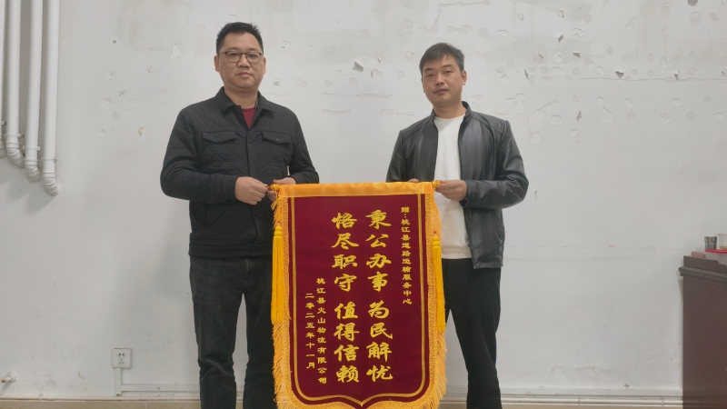 11月21日上午,桃江县飞虎运输有限公司与火山物流有限公司的负责人相约来到桃江县交通运输局,将两面印着“尽职尽责办实事 贴心服务暖人心”的锦旗郑重送到县道路运输服务中心,以感谢县道路运输服务中心一年来为企业发展保驾护航、精准赋能的优质服务。