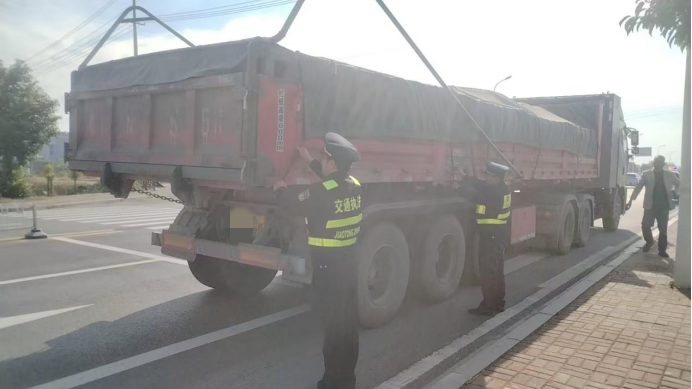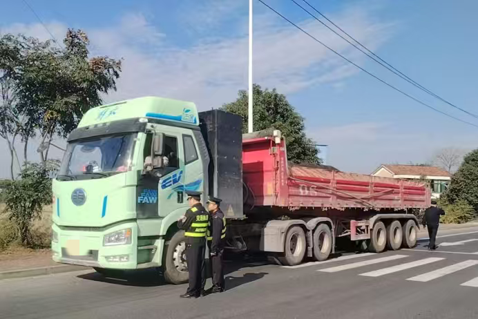 “师傅,您的货车装载矿渣未采取防扬撒措施,不仅可能污染路面,还会影响后方车辆行车安全,存在不小的安全隐患!”11月28日上午10点,桃江县交通运输综合行政执法大队八中队执法人员在S223石牛江环线路口开展日常监督检查时,发现一台满载矿渣从桃江往灰山港方向行驶的大型货车,驾驶员未采取必要措施防止货物扬撒,执法人员当即示意该车靠边停车接受检查。