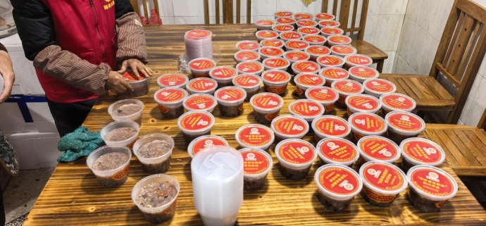 为确保腊八粥品质与口感,志愿者提前两天便进入筹备状态。1月24日,首批志愿者对糯米、红豆、花生、红枣、枸杞、莲子等14种食材逐一挑拣、清洗浸泡;25日,又进行长达8小时的蒸煮预处理,直至夜间10点才收尾,用细致筹备为一碗碗热粥筑牢基础。
