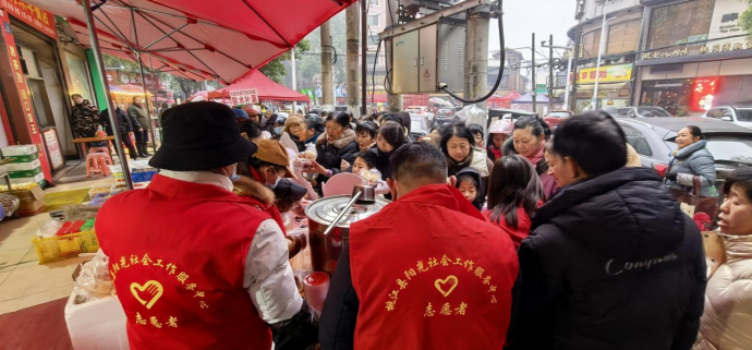 1月26日农历腊八节,桃江县阳光敬老家园联合21名志愿者开展“迎新春 奉福粥”新春慰问活动,精心熬制发放1700余份腊八粥、3000个面包,为1700余名社区居民、医护人员、住院患者及孤寡空巢老人送上节日温暖与新春祝福。