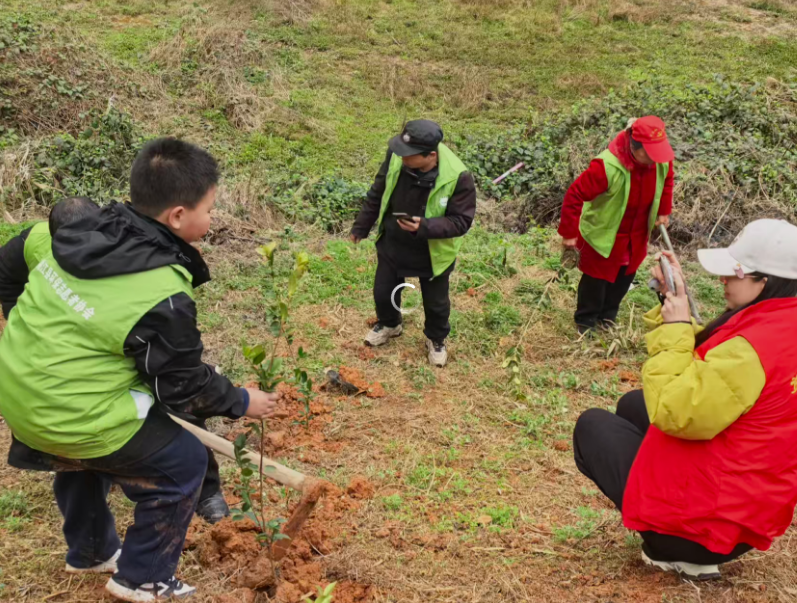 3月7日上午,身着红、绿马甲的资水志愿者协会和浮邱山环保分会的志愿者们,在三堂街镇龙牙坪宇华农庄开展踏春赏花、栽树苗、挖春笋等系列公益活动。