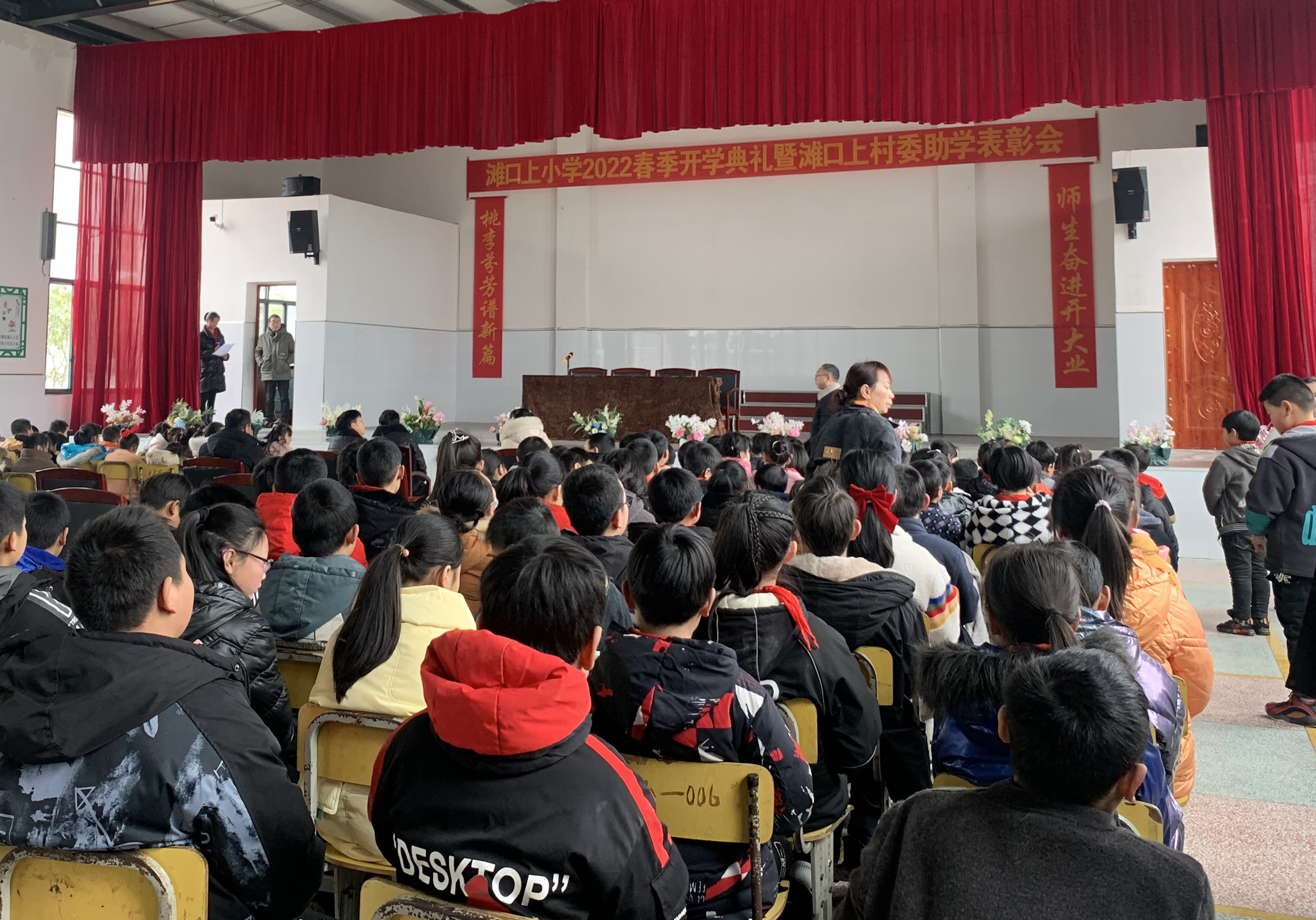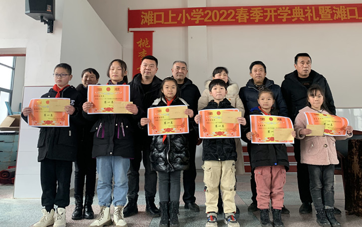2月24日下午,灰山港镇滩口上小学举行2022年春季开学典礼暨滩口上村村委助学表彰会。