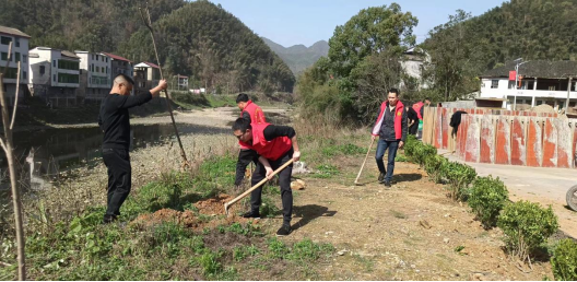 3月14日,马迹塘镇京华村村支两委、驻村工作队、党员志愿者等30余人在该村浏丰溪广场开展义务植树活动,助推美丽乡村建设。