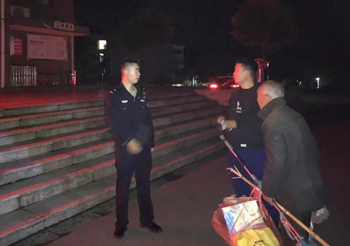 这时,正在加班的镇执法大队工作人员吴东和经济发展办工作人员戴劲得到消息后立即停下了手中工作赶到现场,在确认老人身体体征基本正常后,将老人扶到自己的车上,一边安抚老人的情绪,一边和沾溪镇人民政府值班室、派出所取得联系,随后驱车将老人送到了沾溪镇派出所。