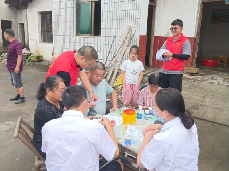 医务人员在受灾居民家中开展了灾后义诊,耐心细致地为每一位居民进行常规检查。同时,向群众普及洪涝灾害后防病知识,发放防疫宣传资料共1200余份,指导群众做好食品及饮水安全、虫媒及肠道传染病防治、灾后环境消杀,增强了群众的防病意识。