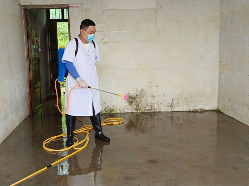 此外,医务人员还给受灾各村委(社区)发放了消毒物资84消毒液300公斤、漂白粉150公斤、漂白粉精片190余瓶。大家分组跟随村委干部挨家挨户走访受灾居民,了解受灾情况,指导村干部及居民对过水的道路、沟渠、水淹房屋、人员密集的公共区域、厕所、垃圾桶等进行全面消杀,并积极参与消杀。