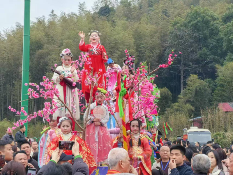 2月11日,“元宵非遗秀 竹海奇幻游”2025年桃江县“紫辰杯”元宵节非遗民俗游艺促消费活动在桃花江竹海震撼上演。其中,“马迹塘故事”作为非遗民俗巡游的压轴项目,备受瞩目,吸引了成千上万的观众。