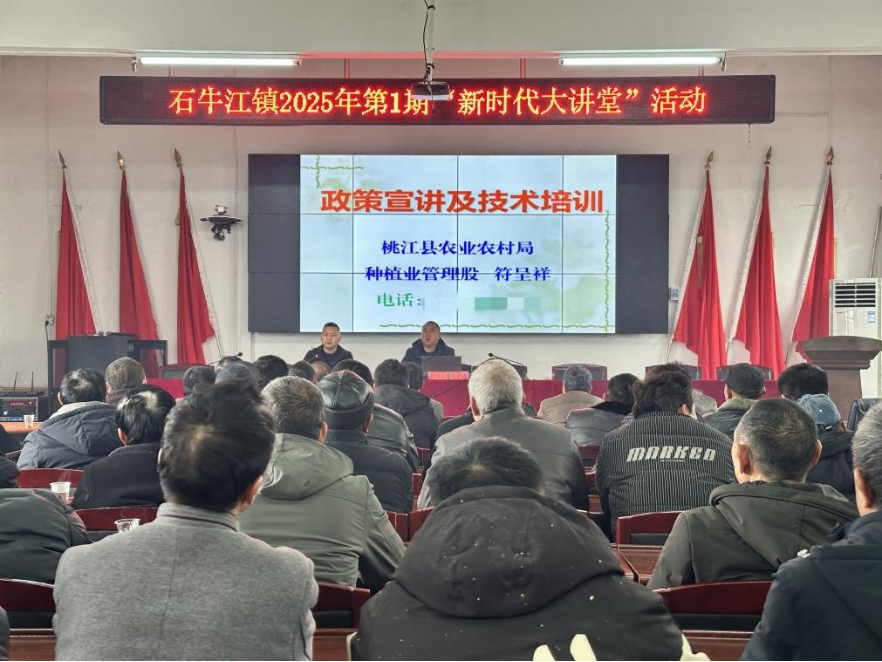 2月25日,石牛江镇举办2025年度第1期“新时代大讲堂”,通过农业专家专题授课与种植大户经验分享相结合的方式,为全镇60余名农业从业者精准输送春耕生产技术,助力现代农业高质量发展。