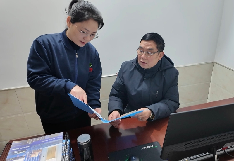 熊小燕向公司总经理易百科汇报工作 刘蓉 摄