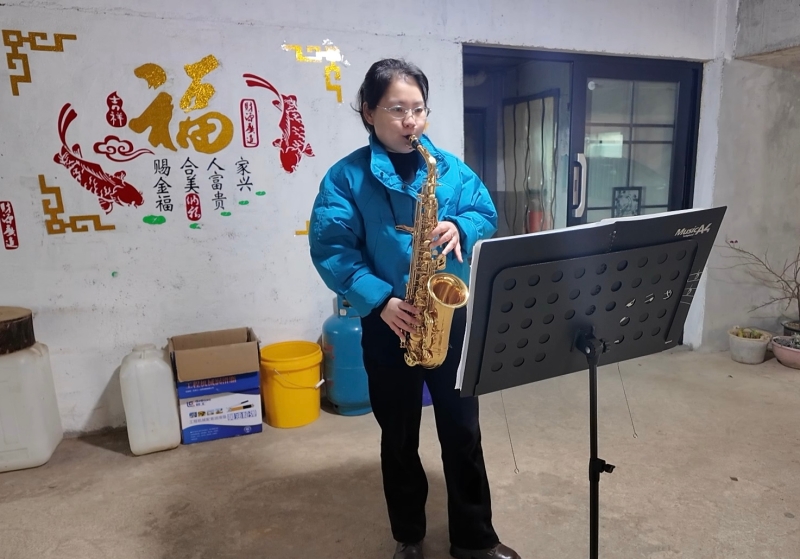 正在练习萨克斯的熊小燕 刘蓉 摄