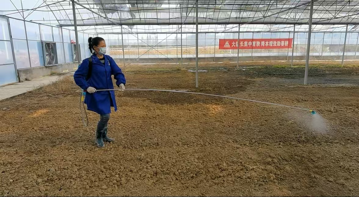 3月7日上午,在公司育秧中心的育秧大棚里,“80后”的刘凤正熟练地操作着喷雾机,给大棚喷洒消毒水。她专注的神情、熟练的动作,展现出专业与干练。这个育秧中心有5个大棚,面积超过3万平方米,育秧在即,给土壤消毒,可以预防秧苗感染病毒,避免出现秧苗坏死的情况。“喷洒前,要严格按照1:100的配比调制消毒水;正式喷洒时,要注意喷洒均匀,不留死角,确保土壤消毒到位,保障育秧前期工作不留隐患。”刘凤介绍。