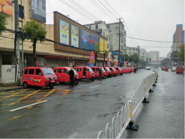 镇区慢慢游有序停放,城镇秩序初见成效 肖洋 摄