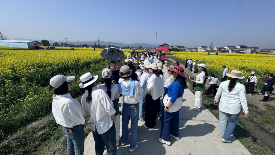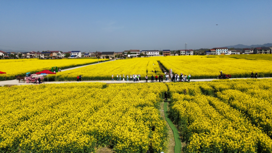 在基地另一侧,一个由38人组成的老年旅行团正在拍照打卡。旅行团负责人周一飞介绍,她自己就是石牛江镇人,这批客人都来自长沙,这是组织的第一批游客,前后还将组织五、六批游客前来观光。“石牛江油菜花海真的很漂亮,客户的评价都很好,我们会分批组织人来玩,就是还有很多客户都期待到桃江来玩。”周一飞说。