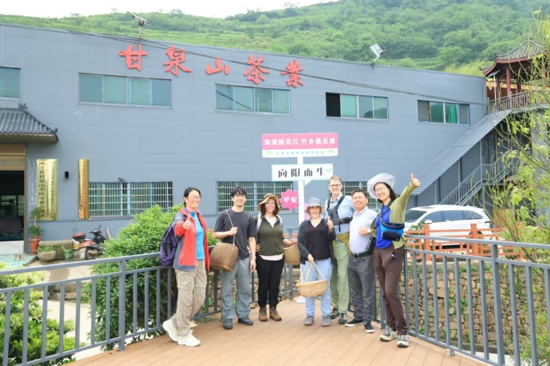 外国游客与甘泉山茶旅基地负责人合影留念 刘蓉 摄