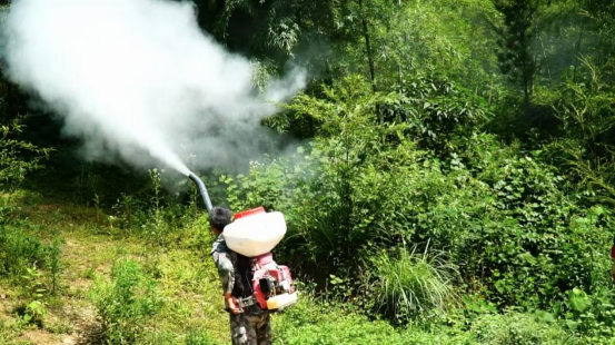 上午7点,软桥村党总支书记丁大聪集结治蝗专职队伍,陆续抵达该村金子滩组和董家冲组的3处竹蝗集中产卵地。防治队员根据竹蝗虫的发育阶段,针对性地采取防治措施。对受到跳蝻侵害的竹林采取低位竹腔注射法,镇级林业技术员易国军就出土跳蝻查找技术、防控四步骤四阶段以及防治实操注意事项等进行精细化讲解,确保发现一处消杀一处,让有蝗虫的竹林得到尽早治理。对受到成片成虫侵害的密集区域则采取喷粉法进行防治,防治员背上装配着适量治蝗药粉的喷粉机,顺着风向对准受灾竹林进行扫描式喷洒,药粉随风吹散在竹林里,聚居在竹叶上的竹蝗成虫掉落一地,防治成效肉眼可见。